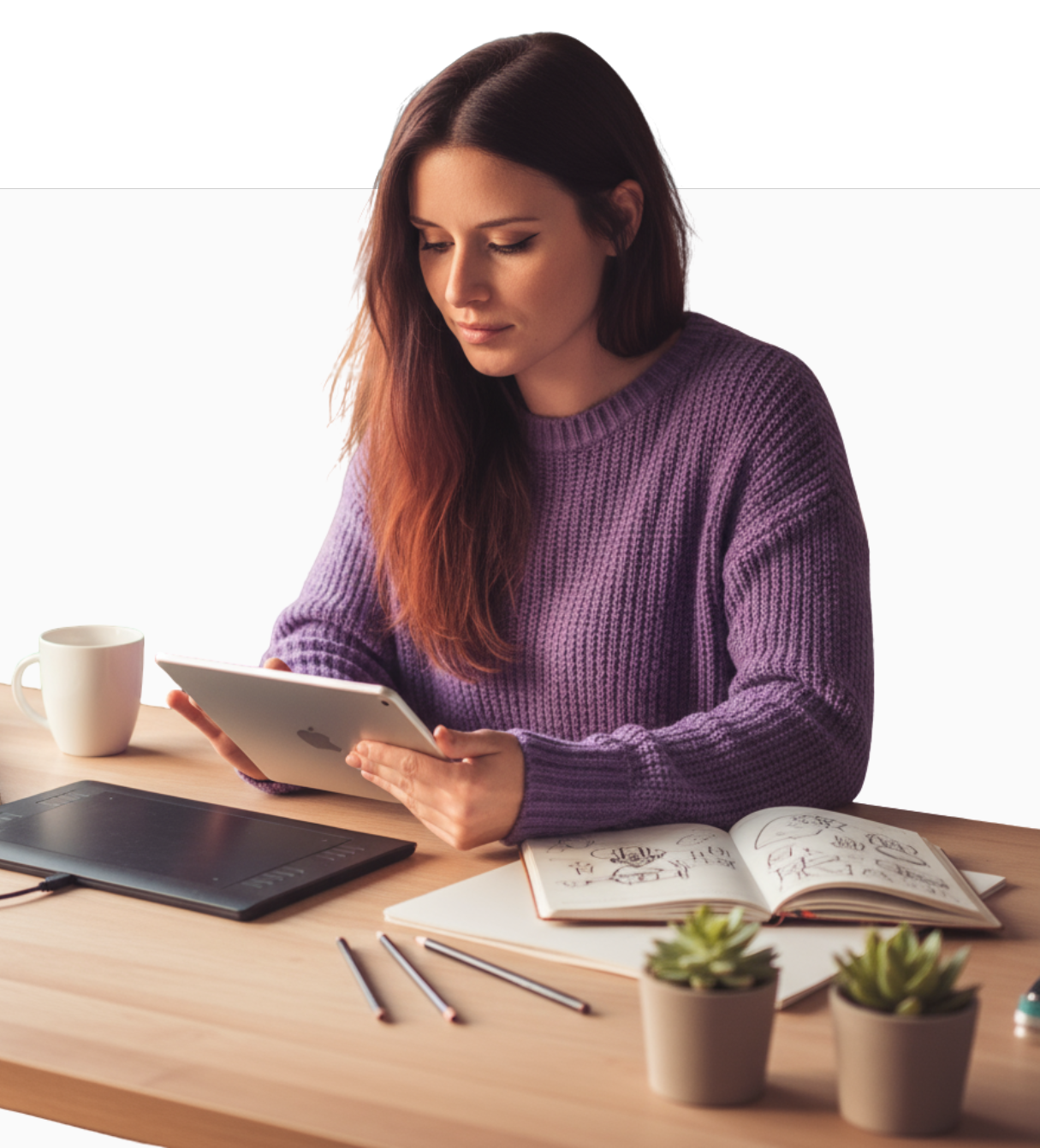 Logo élégant, site qui convertit, feed Instagram harmonieux : je prends tout en main pour que vous puissiez vous concentrer sur votre métier.